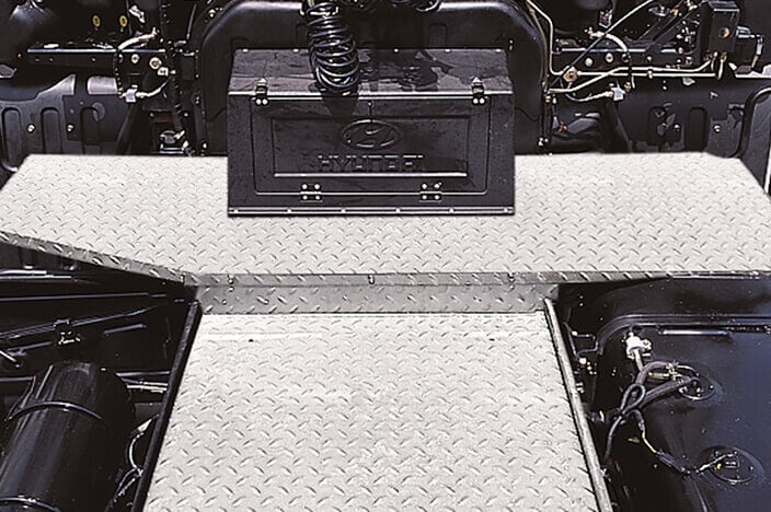 Sàn cỡ lớn, có các bước để lên xuống dễ dàng, tay điều khiển hai bên dễ dàng cho việc kết nối và ngắt kết nối nhanh. Nó cũng bao gồm các hộp công cụ cỡ lớn để bảo vệ cho bình nhiên liệu, ắc quy và bình khí