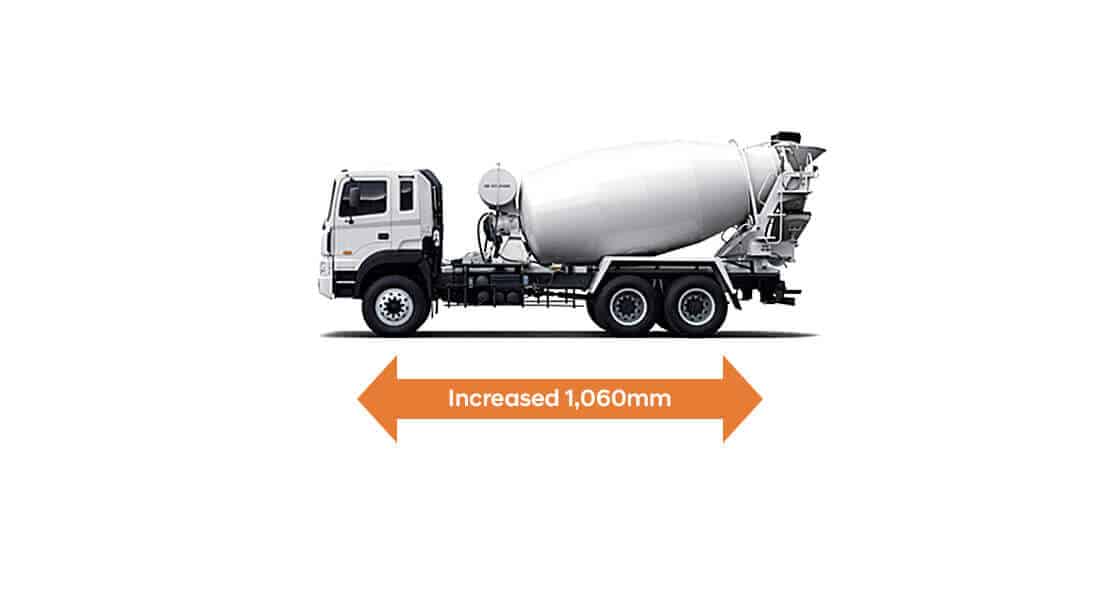 Chiếc xe bồn trộn đời mới HD270 Mixer được cải tiến với trục cơ sở dài hơn mang lại sự thoải mái cho lái xe cũng như thuận tiện khi lắp đặt, được cải tiến theo nhu cầu của khách hàng.